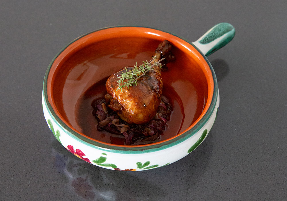 Cosce di pollo brasate di San Patrizio alla birra scura con cipolle caramellate