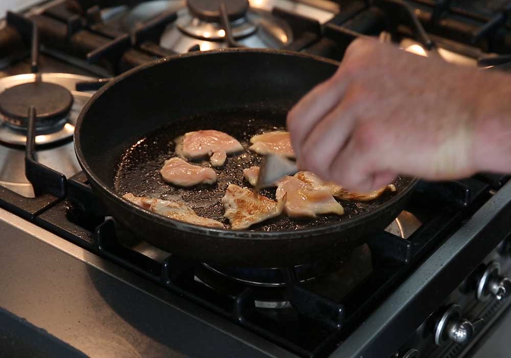 Una volta marinato, grigliamo il petto di pollo su una piastra ben calda o una padella antiaderente, da entrambi i lati, fino a cottura.